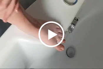 Ich weiß genau, wie sehr er auf meine Füße steht, also habe ich ihn heute mal so richtig gequält. Ich habe meine Sohlen frisch eingeölt und seinen harten Schwanz damit so lange bearbeitet, bis er fast um Gnade gewischt hat. Es gibt nichts Geiler...