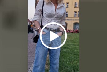 Im schicken City-Girl-Outfit bin ich in der Stadt unterwegs. Bei ein paar Drinks genieß ich den lauen Sommerabend. Aber die Drinks wollen leider schneller wieder raus, als mir lieb ist. Aber warum lang ne Toilette suchen, wenn ich einfach ne geile W...